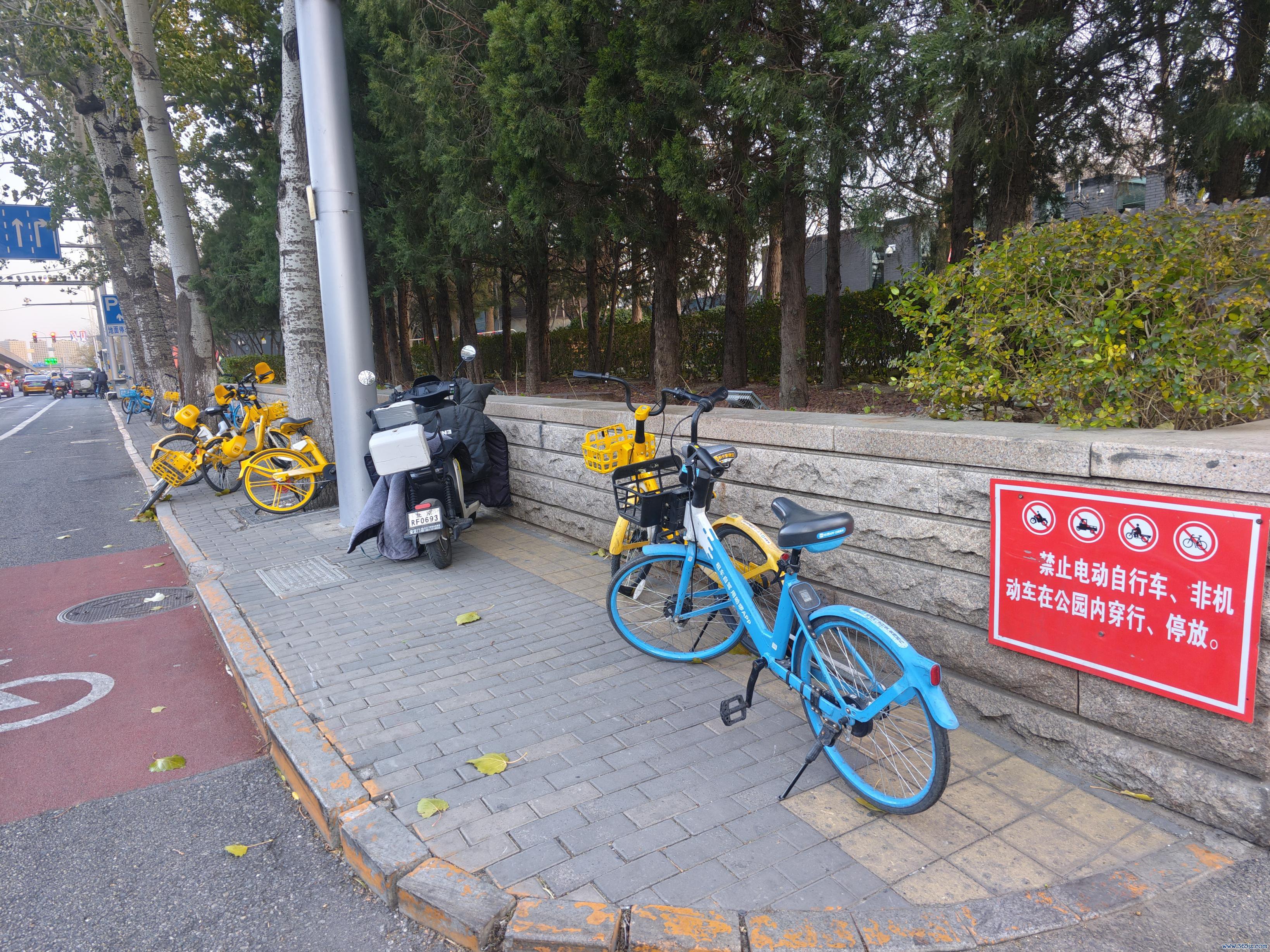 雍和宫站附近人行步道被非机动车霸占