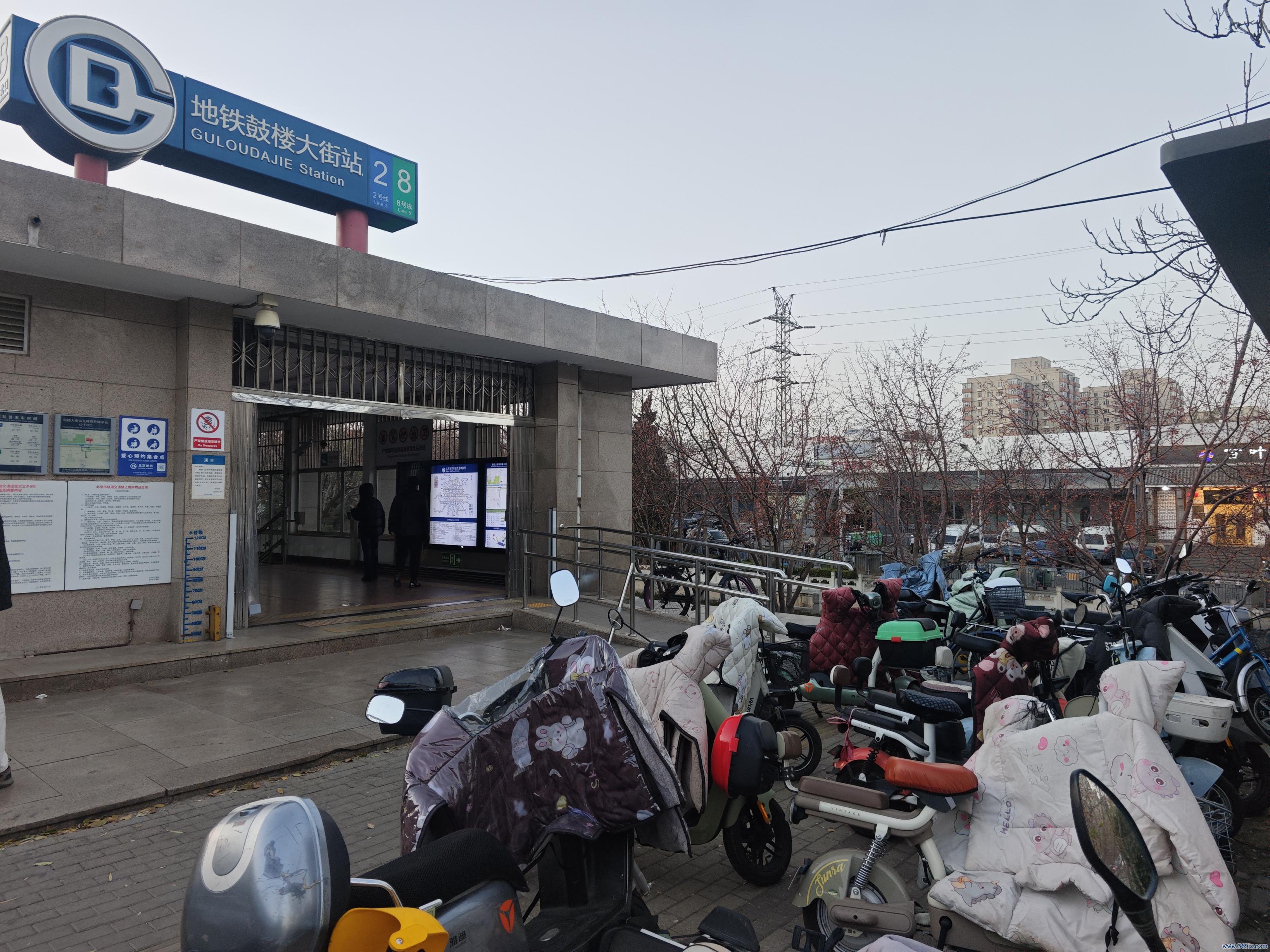 鼓楼大街站外,非机动车占据盲道